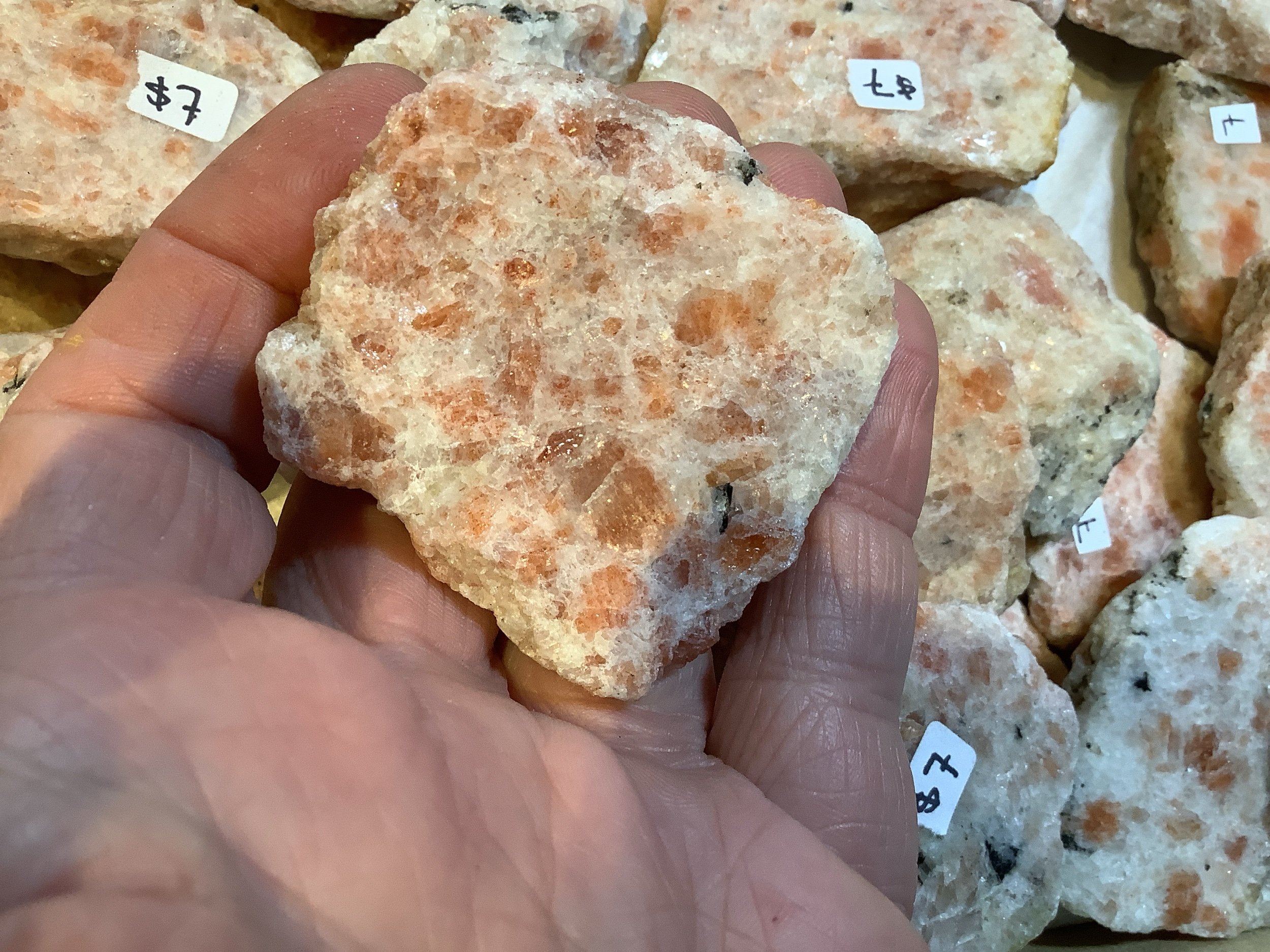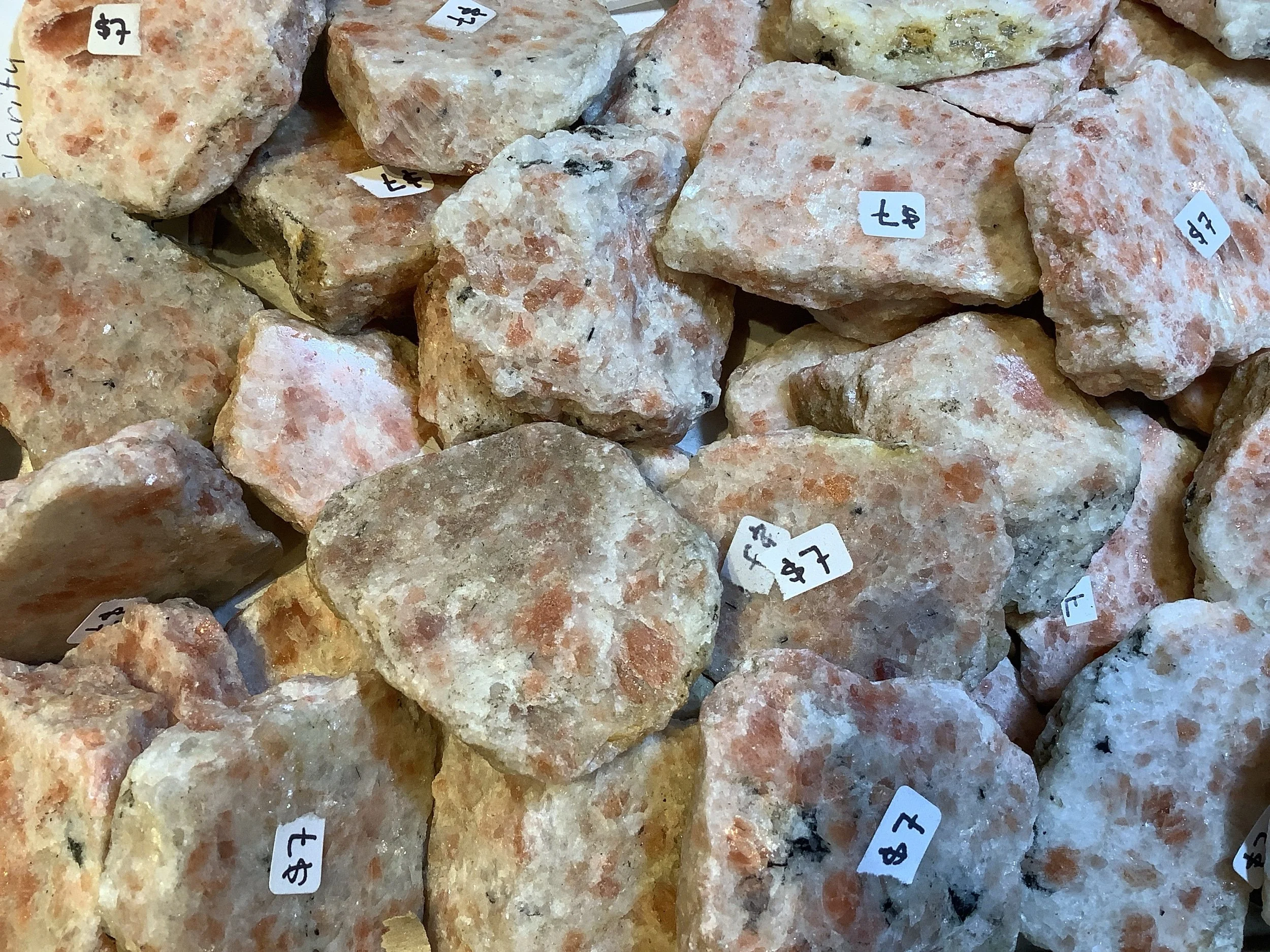 minerals › Sunstone flat Image 1 of 2 Image 2 of 2 Sunstone flat $7.00 Sunstone from India. Raw with one face polished. Add To Cart Added! Sunstone from India. Raw with one face polished.