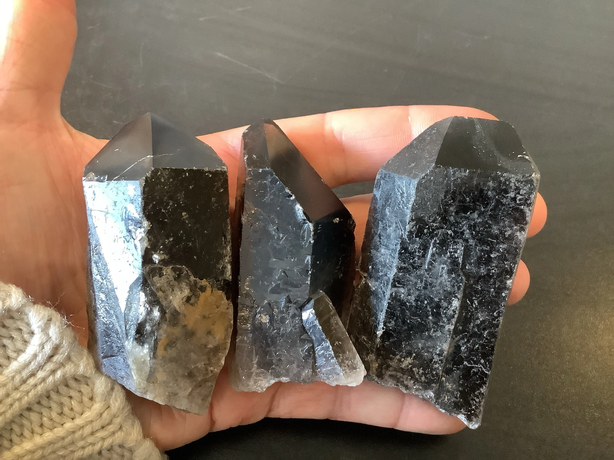 minerals › Smoky Quartz Point Image 1 of 1 Smoky Quartz Point $30.00 Palm-sized dark Smoky Quartz point.Brazilian. Add To Cart Added! Palm-sized dark Smoky Quartz point.Brazilian.
